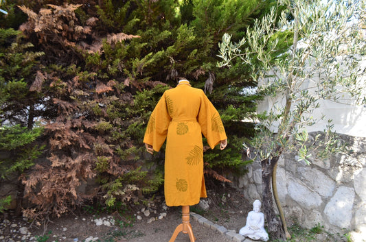 Ex Natura Sarı Uzun Yırtmaçlı Kimono