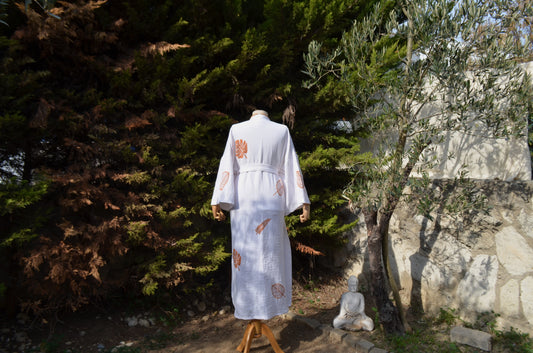 Yarasa Model Kimono Panço | İçi Müslin Dışı Keten | Güneş Çizimli