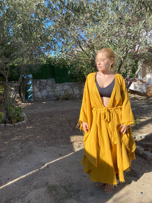 Golden Light Sarı Uzun Yırtmaçlı Kimono