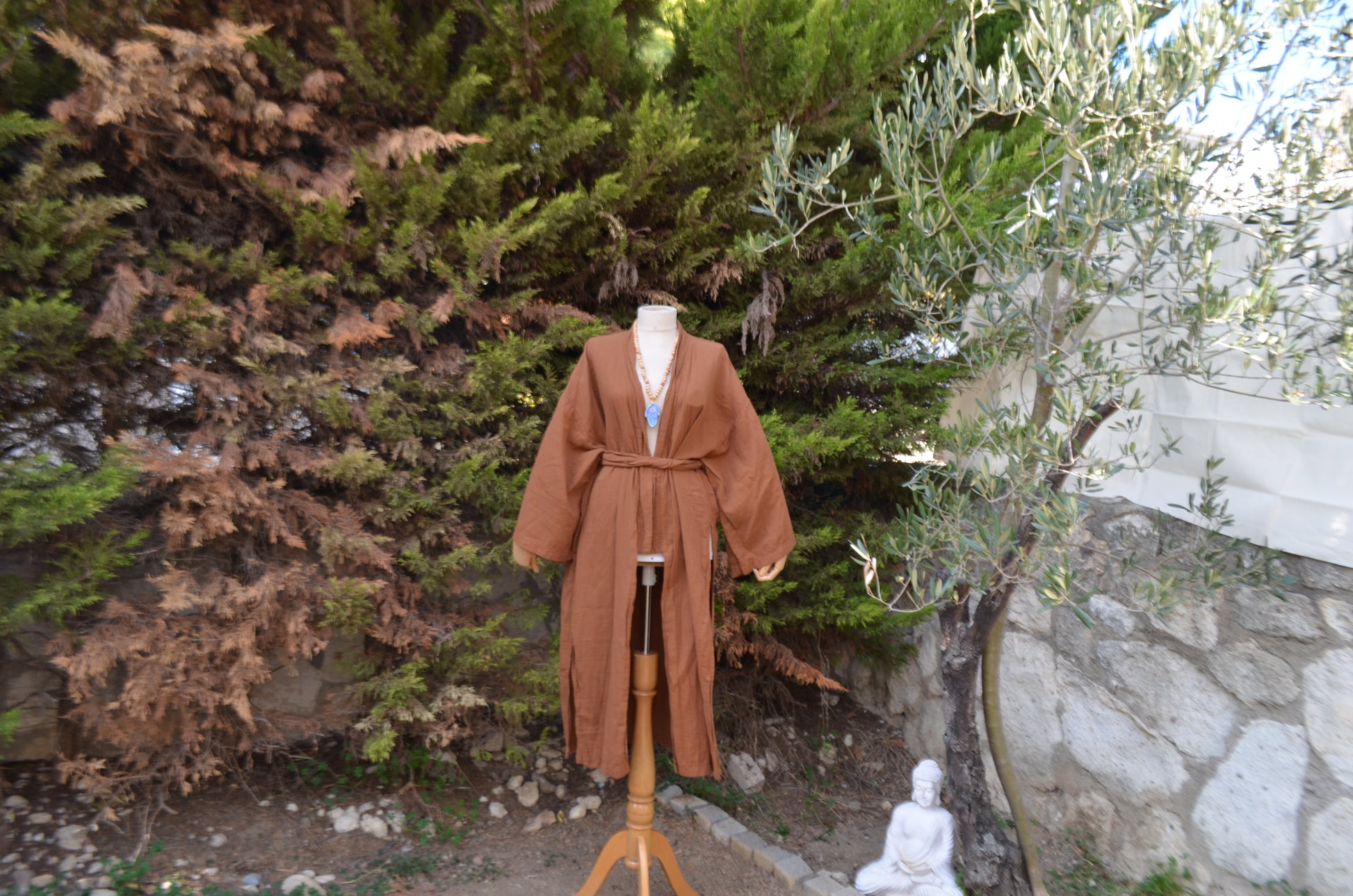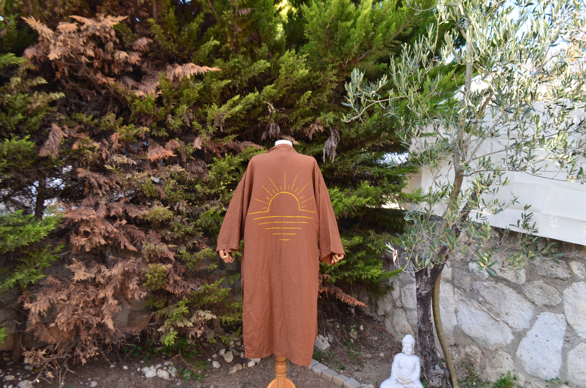 Golden Light Kahverengi Uzun Yırtmaçlı Kimono