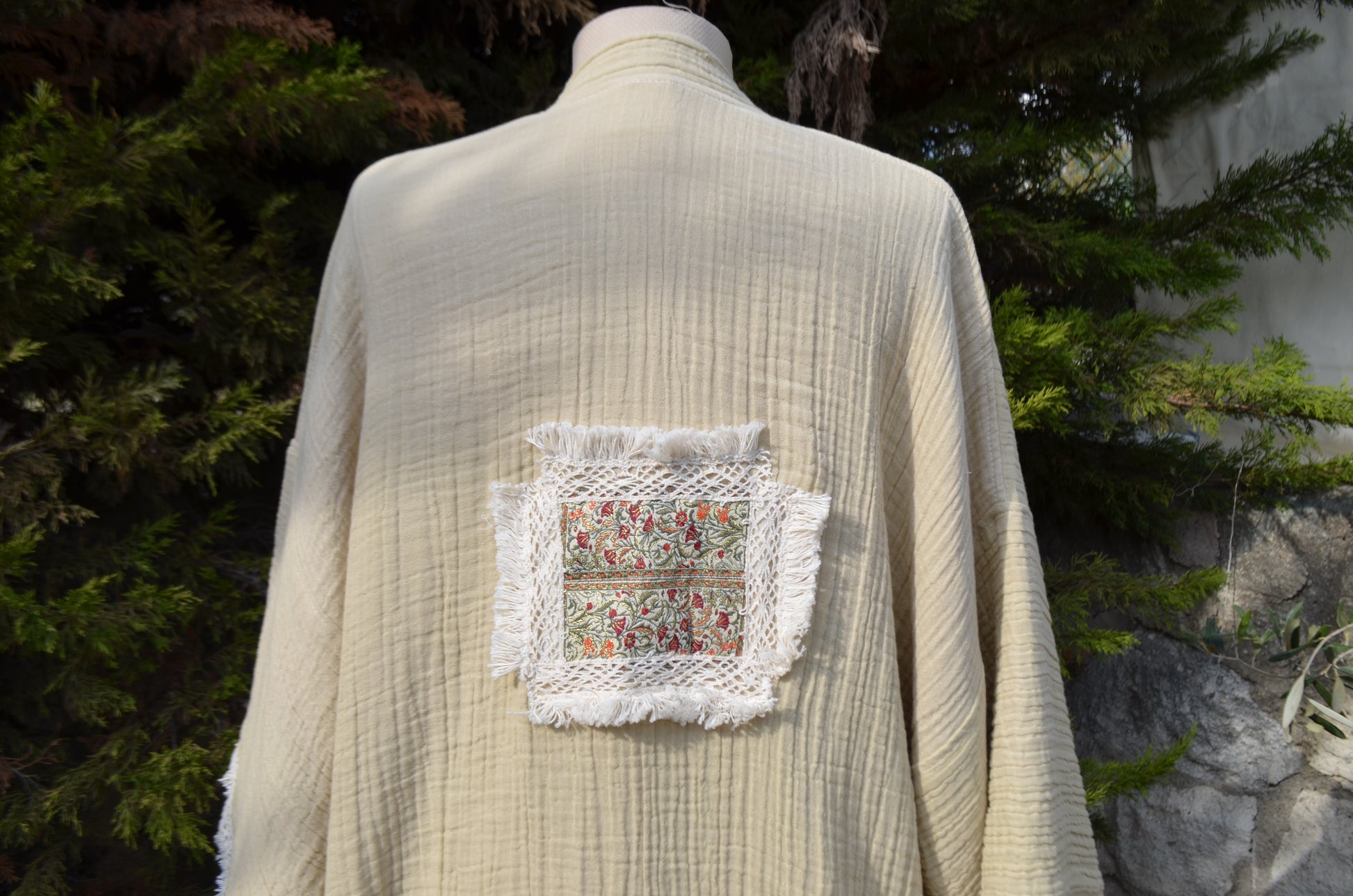 - Özgün Tasarım: Geleneksel desenlerden ilham alınarak hazırlanan bu kimono, her dikişiyle dayanıklılığı artırırken benzersiz bir estetik sunar.